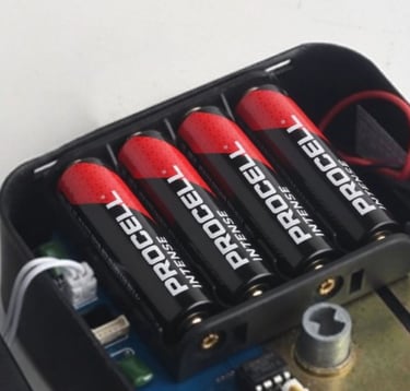 Portapilas para colocar 4 pilas alcalinas AA no recargables.