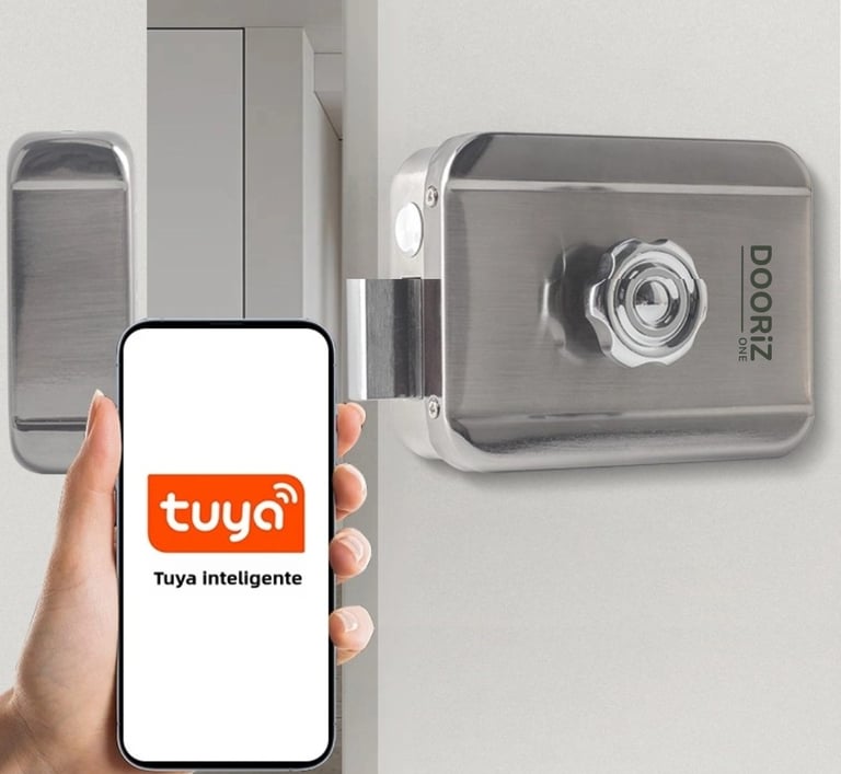 El dispositivo de conexión Dooriz LINK puede abrir en remoto la cerradura a través de la app móvil Tuya.